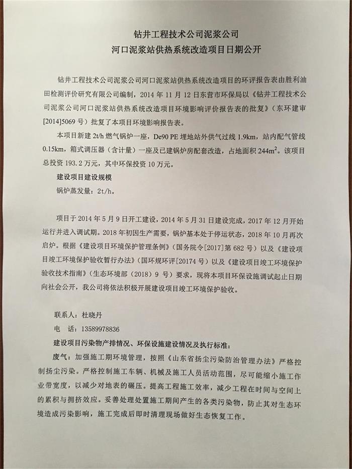 鉆井工程技術(shù)公司泥漿公司河口泥漿站供熱系統(tǒng)改造項(xiàng)目日期公開(kāi)