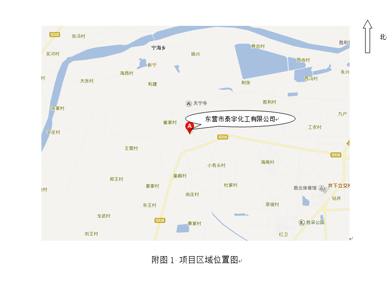 東營(yíng)市泰宇化工有限公司位于墾利縣勝坨鎮(zhèn)工業(yè)園區(qū)。廠區(qū)北面為勝坨鎮(zhèn)工業(yè)園區(qū)道路,路對(duì)面為東辰集團(tuán)建筑安裝有限公司,南側(cè)為寶仕達(dá)公司(為油田生產(chǎn)設(shè)備配件的企業(yè)),東側(cè)為東辰集團(tuán)溶劑油項(xiàng)目,西側(cè)為工業(yè)園區(qū)道路,道路西側(cè)為空地。 |