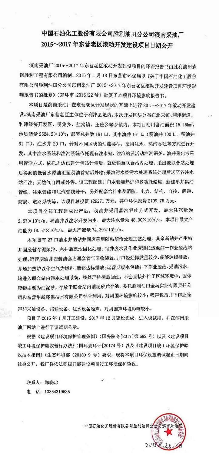中國(guó)石油化工股份有限公司勝利油田分公司濱南采油廠(chǎng)2015~2017年?yáng)|營(yíng)老區(qū)滾動(dòng)開(kāi)發(fā)建設(shè)項(xiàng)目日期公開(kāi)